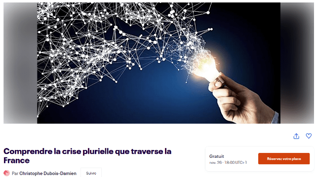 Inscription Eventbrite en présentiel ou en distanciel ici (lien d'inscription dans la description de l'événement)